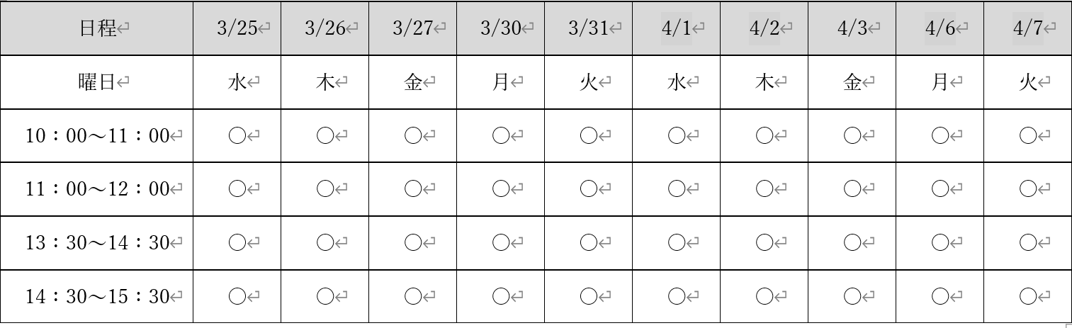 令和8年3月25日(水)~4月7日(火) 土日を除く