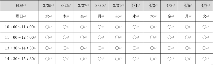 ※少人数制のため、時間厳守をお願い申し上げます。